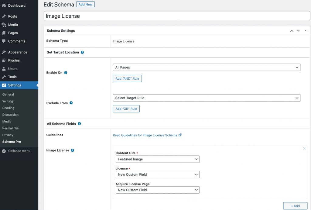 Once that’s done, head over to Settings > Schema Pro and click on Add New.