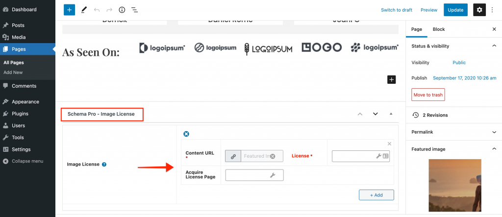 Schema Pro offers page-level control for all schema types. The above option serves a global purpose. But if you need to add the image license schema to individual pages or posts, you can do so.