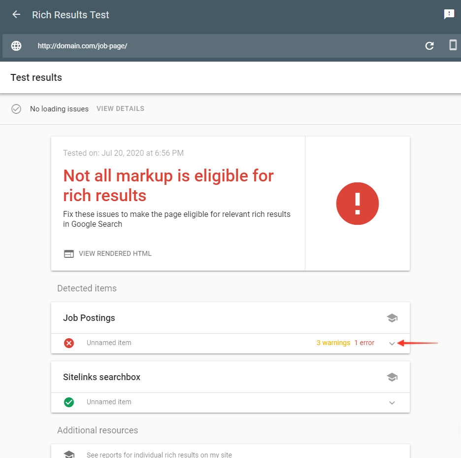 Warnings, on the other hand, are basically the recommended fields in schema. They encourage your eligibility to appear in search results. Although they are not must-fill-in fields, they are important and we recommend you fill as many as recommended fields as possible or are applicable.