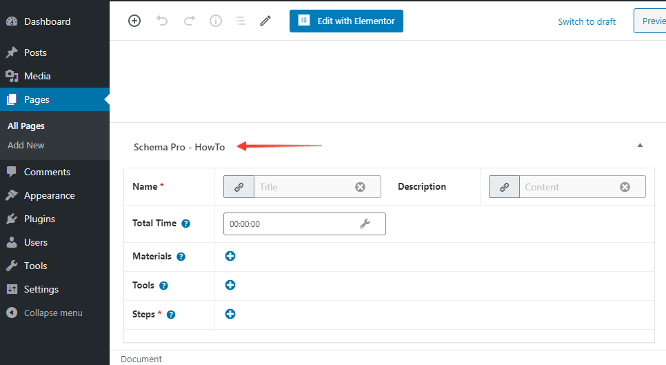Schema Pro provides HowTo schema option where you can add details about your how-to content like title, description, required tools, steps, etc.