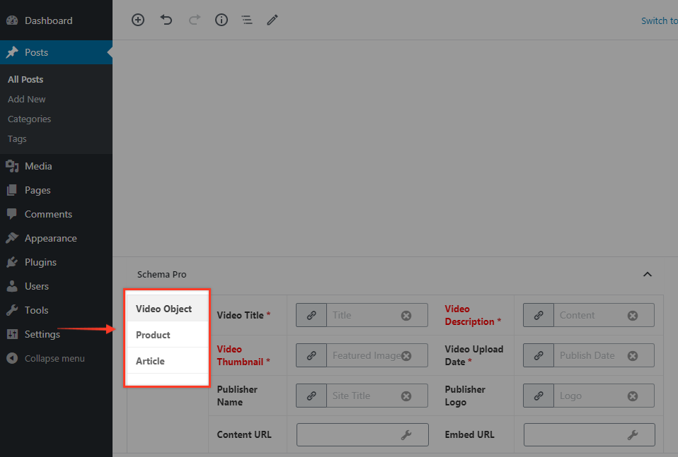 Note: By default, the toggle will be OFF. That means when you add filter code, your schema will be disabled. You can enable the required schema on the post/page.