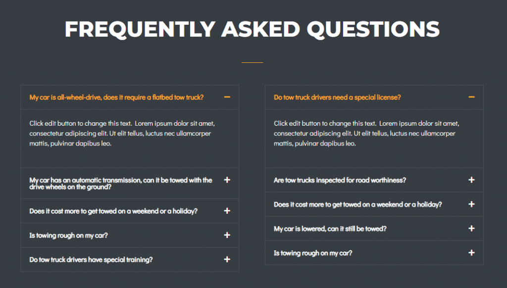 The block offers two ready made layouts with total customization options. These are most suitable layouts for FAQ sections and are easy to manage.