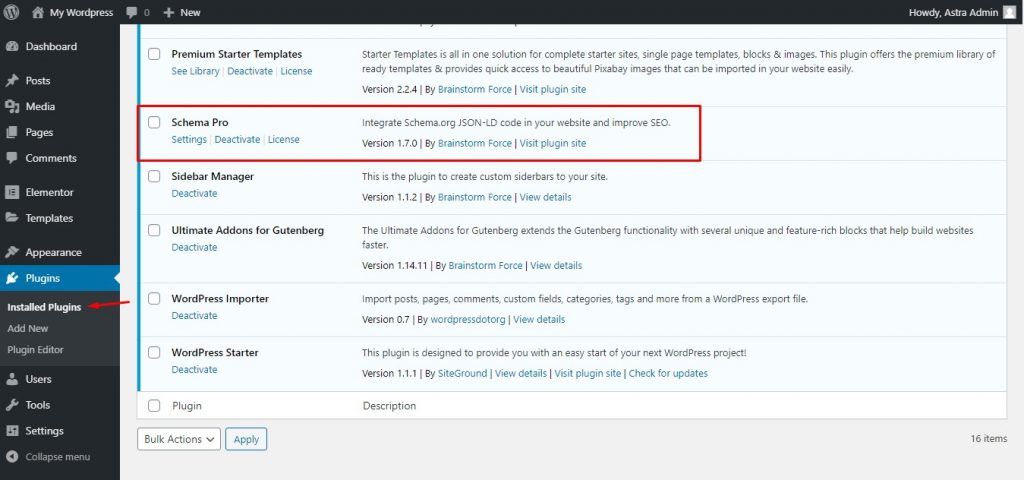 IMPORTANT NOTE: Before deleting the plugin, make sure that the “Delete Data on Uninstall?” setting is unchecked. You can verify this by going to your WordPress Dashboard -> Settings -> Schema Pro -> Plugin Settings