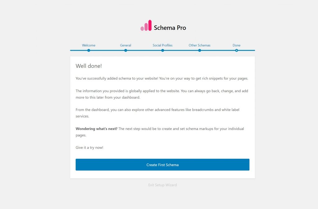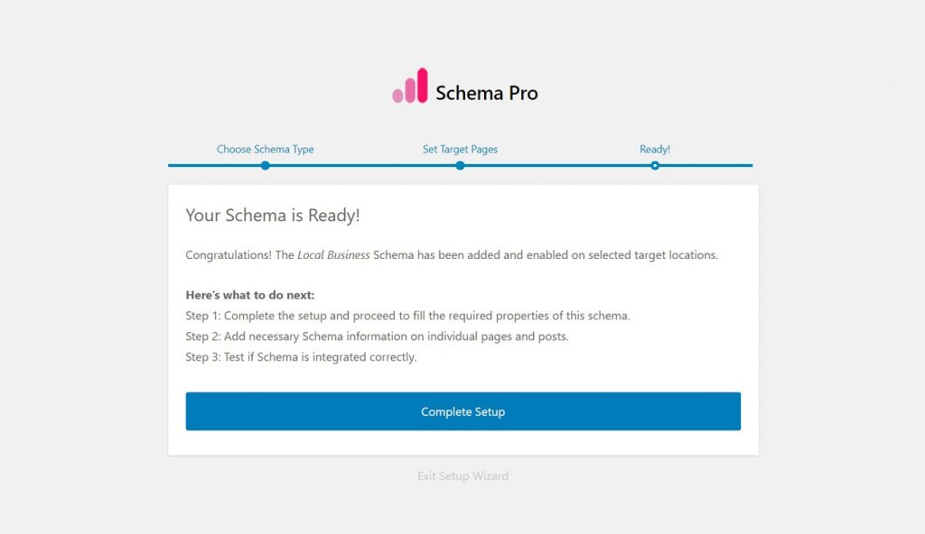 Step 2 – Continue filling options in the setup wizard. Last screen of the wizard lets you create a schema type. You can proceed creating a schema where you can add Local Business schema type.