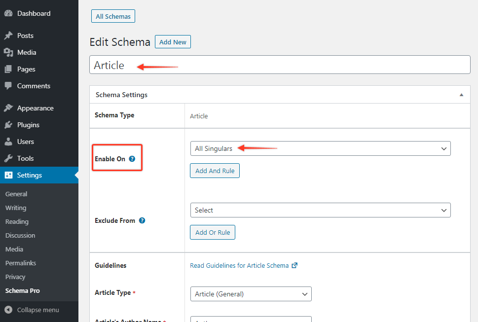 – You have created an Article schema and applied it to all singulars.