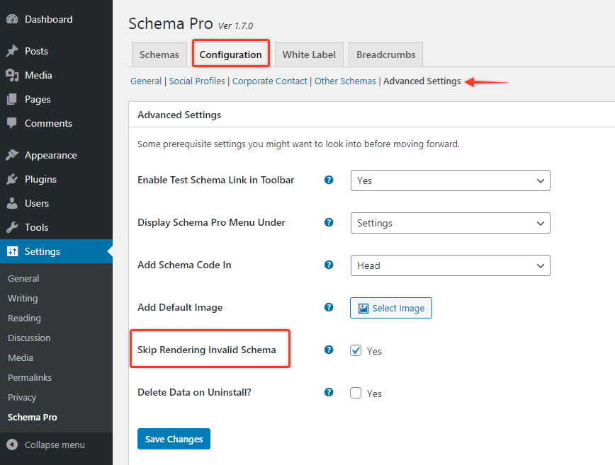 The plugin also offers a new option to skip rendering invalid schema. That means in case you missed any required fields the schema won’t be rendered. This will prevent showing any schema errors on your page. Read more about this option here.