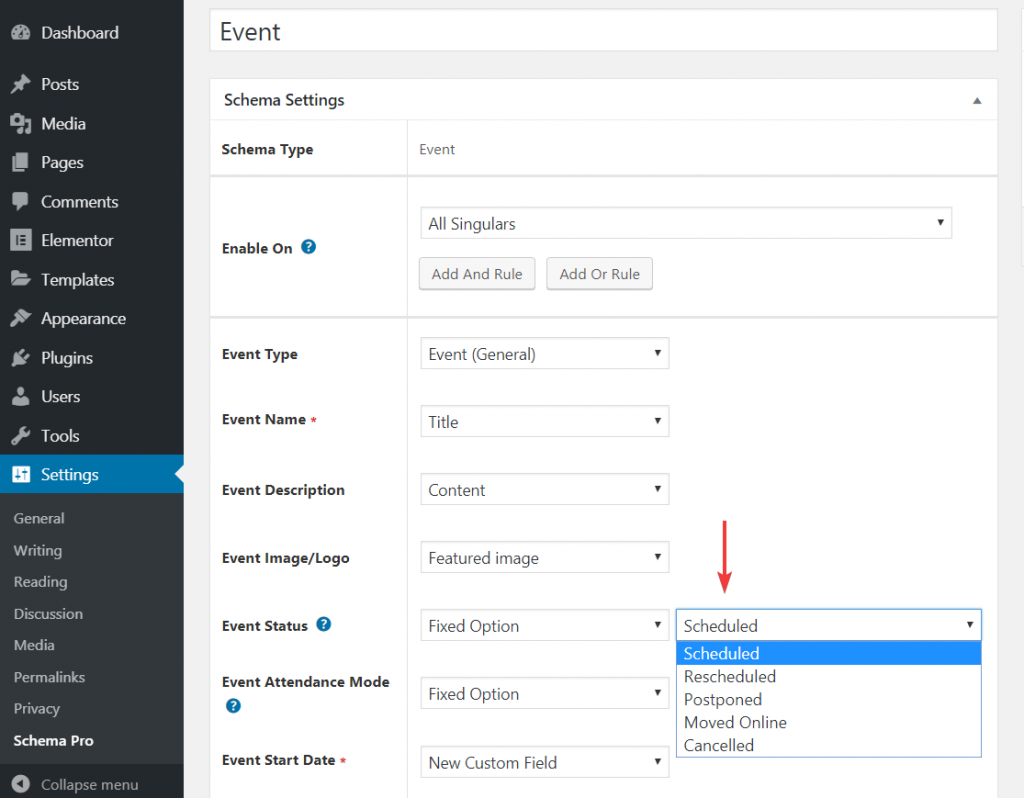 In the latest version of the Schema Pro plugin, new properties are made available with Event schema.